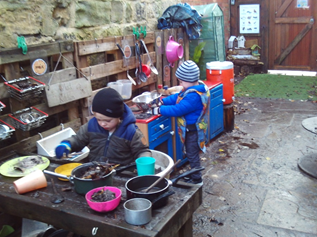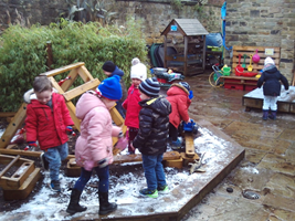 During the cold spell of weather the children have been exerting their independence by putting on their coats, boots, hats and gloves. Support has been given with self-care and also with writing, taking turns and spelling names.