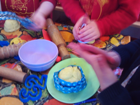 The playdouh was used to create birthday cakes and Christmas puddings, role-play included sleeping beauty, going to the hospital, moving house, delivering present on sleighs and being dinosaurs.