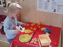 The weather may not be sure of what it was doing this week but the children definitely knew what they wanted to play,engage and experiment with. This weeks favourite activities included building ramps for wheels and balls, water chutes, playing hide and seek, building sandcastles, jigsaws, singing, dancing, experimenting with musical instruments, collecting leaves,doctor role-play, marble-run, matching numbers and Lego.