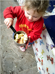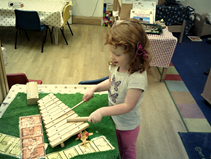 Singing rhymes and songs accompanied musical instruments that children were supported with to match the rhythms.