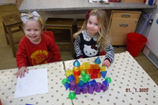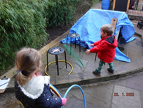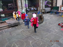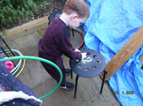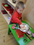 The children were given the opportunity to help prepare a healthy fruit salad for snack-time which also incorporated good hygiene practice and safety aspects. The children show a great deal of confidence in choosing which activities to engage in, one of them being the construction obstacle courses which again brings an opportunity to talk about how to use equipment safely and risk taking. The builders were in again helping to cordon off areas, deliver supplies, mend areas, build fairy cities and build bridges.