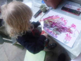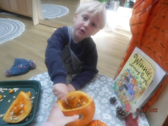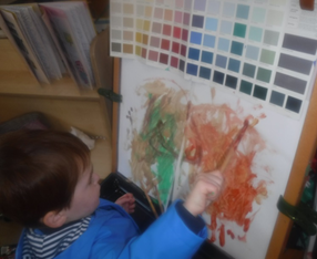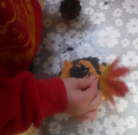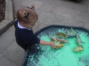 Over the past few weeks, the children have engaged in a range of activities that have incorporated colour matching, making a swamp for the dinosaurs, paint mixing, mark making, as well as exploring the textures and smells of our selection of knobbly gourds.